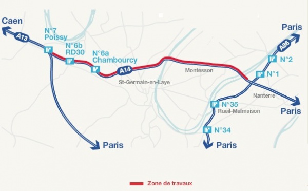 Des travaux seront réalisés sur l'autoroute A 14 entre La Défense et l''échangeur de Poissy-Orgeval (embranchement avec l'A13) à partir du 28 juillet et jusqu'au 12 août. La Société des autoroutes...
