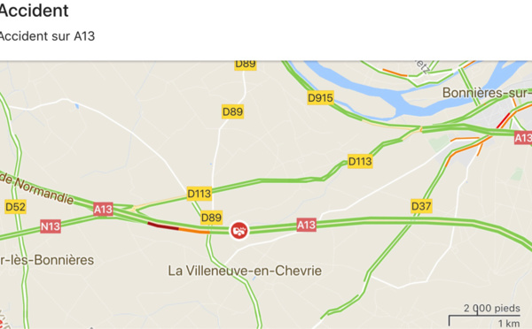 Trois accidents sur l'A13 ce matin dans les Yvelines : bouchon de 16 km entre Mantes et Poissy - Publié le 11/09/2017