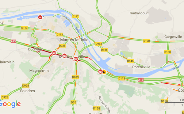 Un accident est signalé ce lundi matin sur l'autoroute A13 au point kilométrique 48 peu après le péage de Mantes-Buchelay en direction de Paris. Il impliquerait un véhicule et une moto. Un bouchon...