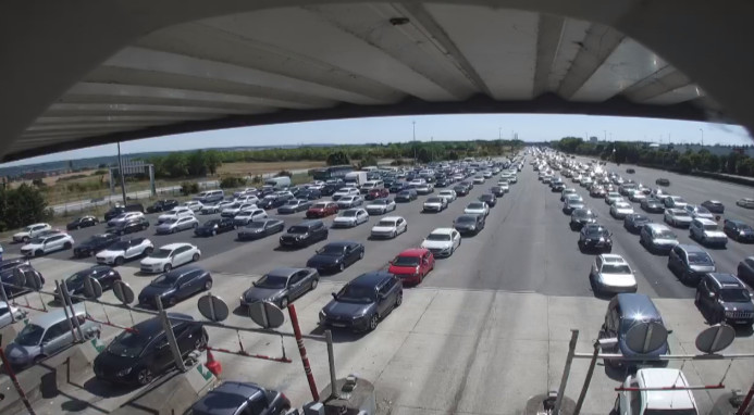 Samedi 16 juillet. En fin de matinée, il faut faire preuve de patience pour franchir la barrière de péage de Mantes-Buchelay en direction de la Normandie - Capture d'écran Viewsurf.com
