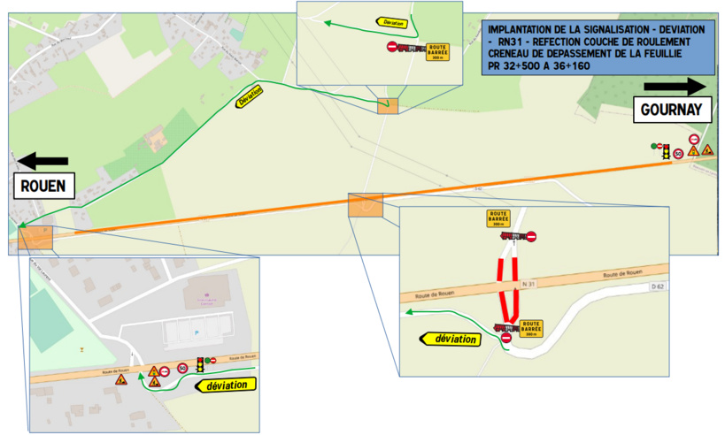 À cette occasion, l’intersection entre la RN31 et RD62 sera fermée et un itinéraire de déviation sera mis en place lors de cette fermeture.