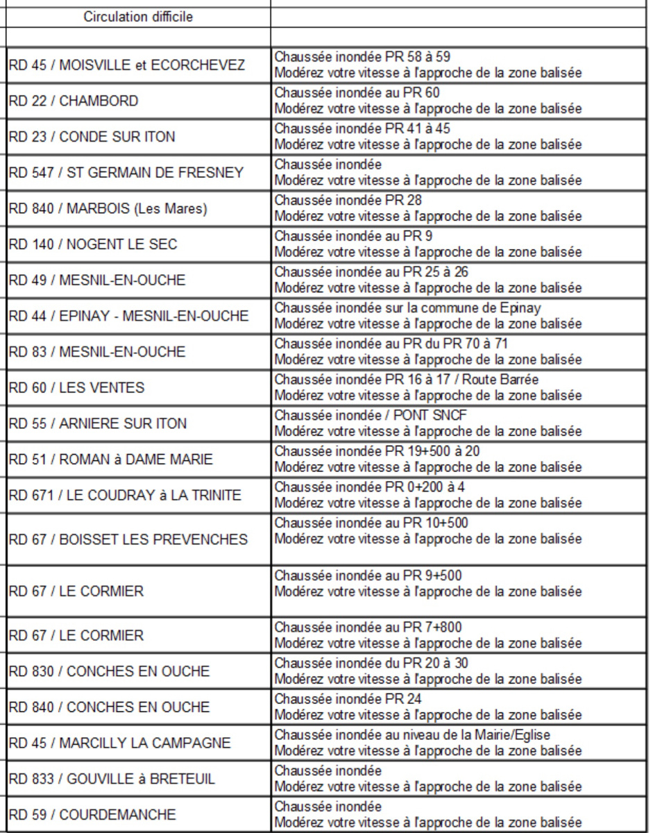 40 routes départementales sont fermées à la circulation et 5 sont difficiles d’accès.