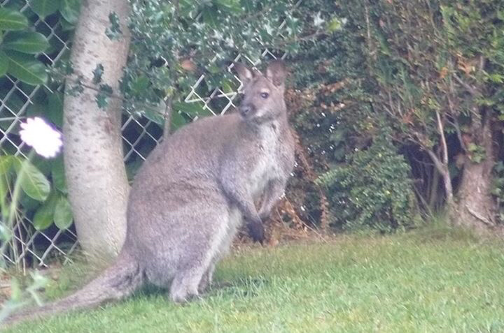 Le kangourou allait de jardin en jardin, lorsqu'il a été repéré ce matin à Envermeu (Photo @Gendarmerie/Facebook)