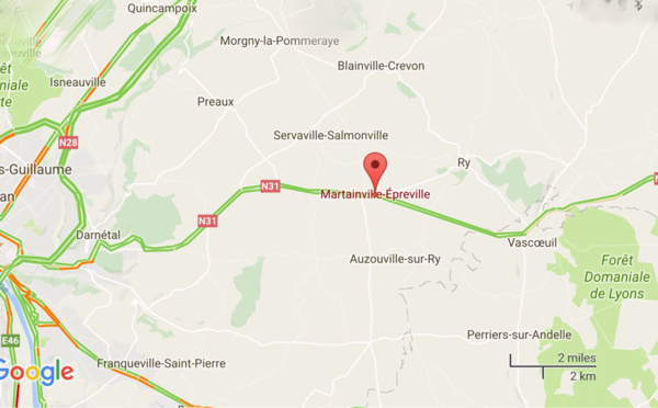 L'accident provoque la chute d'un poteau électrique : la RN31 coupée à Martainville-Épreville - Publié le 10/08/2016