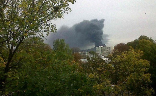 Une vue de la colonne de fumée depuis le Petit-Quevilly Merci à LaureneT@LoGaga (via twitter) Le feu d'hydrocarbures est maintenant complètement circonscrit sur le pont Mathilde et aux abords à Rouen...