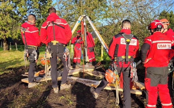 [Actualisé] - Des équipes spécialisées en sauvetage ont été engagées ce jeudi matin pour sortir une brebis tombée dans une marnière de 5 m de profondeur à Angiens (Seine-Maritime)