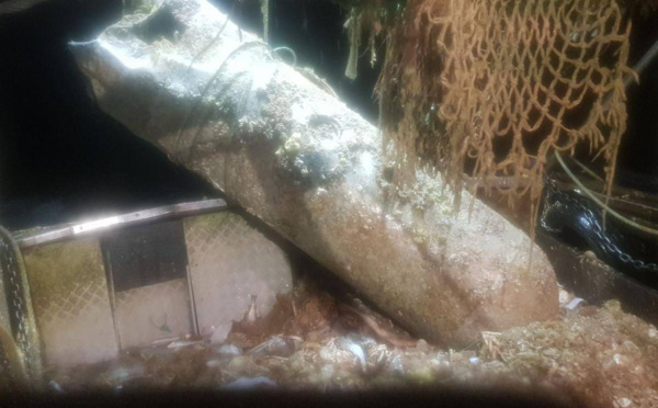 L'engin explosif, de près d'une tonne, date de la Seconde Guerre mondiale. Elle a été remontée ce jeudi matin par un chalutier qui se trouvait en zone de pêche à une dizaine de kilomètres de la côte...