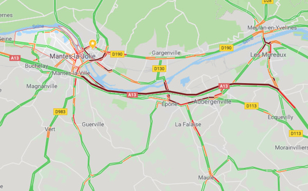 La circulation est très perturbée sur l'autoroute A13 en direction de Rouen, suite à un accident qui s'est produit dans l'après-midi au niveau de Mantes, au kilomètre 48, dans les Yvelines....