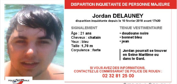 Rouen : le corps de Jordan Delauney retrouvé sans vie plus d'un mois après sa disparition - Publié le 19/03/2018