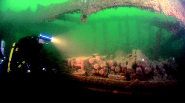 Dans l'épave qui rposait par 40 mètres de fond, les plongeurs-démineurs ont découvert 390 obus (Photo Marine nationale)