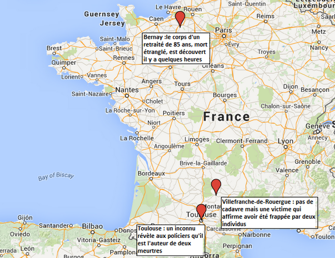 Plus surprenant encore, l'aveyronnais s'accuse aussi d'un autre crime à Villefranche-de-Rouergue. Il l'aurait commis "il y a deux semaines environ" avec un complice, un jeune homme de 20 ans qui a été également arrêté près de Toulouse.
