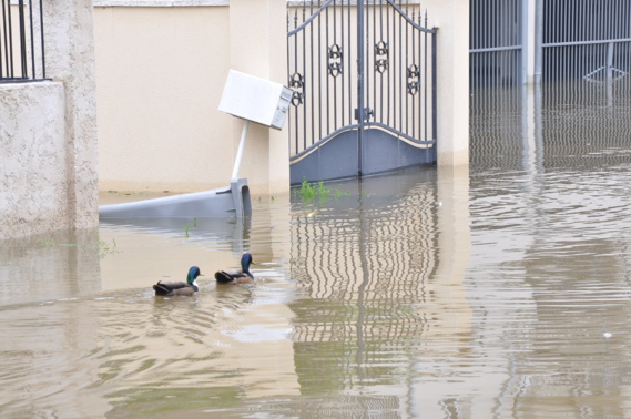 La Seine rentre prograssivement dans son lit, au grand dam de ces canetons qui pataugent quai de Seine à Vernon (Photo@Infonormandie)