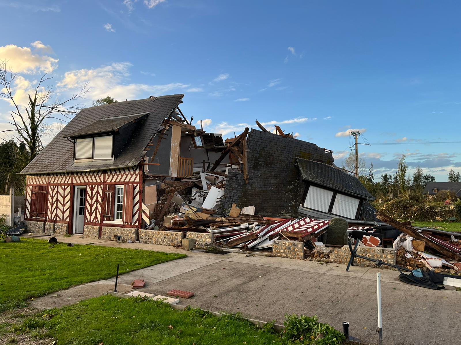 Dans le secteur de Beuzeville - Pont-Audemer, cette maison a été partiellement détruite sous la force du vent - Photos © SDIS27