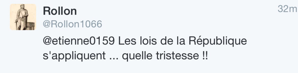 "Les lois de la République s'appliquent... Quelle tristesse", a réagi, sur Twitter, un internaute répondant à l'avocat rouennais Étienne Noël qui exprimait lui aussi sa tristesse.