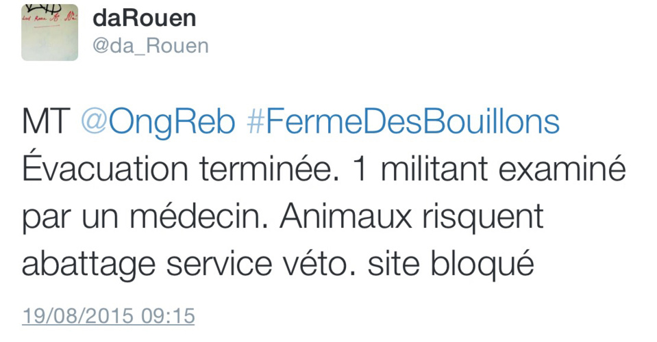 "Trois semaines après que ce projet de transaction a été rendu public, EELV regrette que les services de l’Etat n’aient pas pris les mesures nécessaires pour garantir aux habitants et aux élus locaux la vocation agro-écologique du site, tout en valorisant le travail accompli par l’association pour la protection de la ferme des Bouillons pour faire (re)vivre la ferme".Dans ce contexte, EELV Normandie demandait de toute urgence au Préfet de Haute-Normandie d’empêcher, notamment, "la mise hors jeu de l’association et de ses soutiens" et à la SAFER* "de mettre ses actes en concordance avec ses discours défavorables aux détournements de foncier agricole facilités par le statut de SCI".