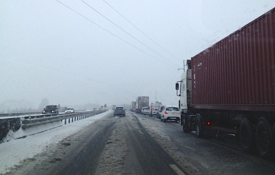 Prudence ce matin sur la RN 27 : la couche de neige rendait la chaussée glissante