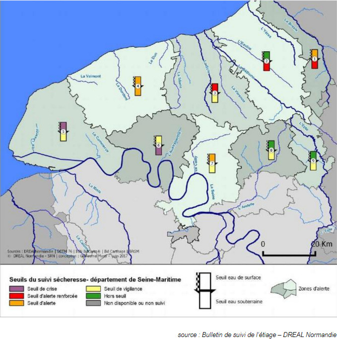 L'ensemble des informations relatives à cette situation est disponible sur le site de la délégation interservices de l'eau et de la nature (DISEN) : http://dise.seinemaritime.agriculture.gouv.fr/