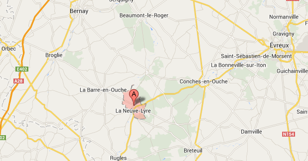La Vieille-Lyre (village mitoyen avec La Neuve-Lyre) est situé à 7 km au sud-est de la Barre-en-Ouche @Google Maps