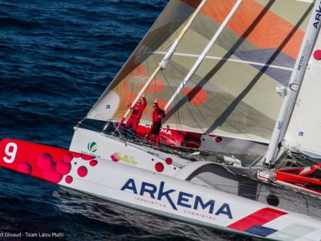 85 heures…. Après le chavirage de leur trimaran Arkema – Région Aquitaine le dimanche 10 novembre à 23h00, les deux marins ont passé plus de 3 jours et demi, soit quatre nuits, dans les 4m² de la coque retournée du bateau. C’est à 12h00 heure française ce jeudi 14 novembre que le remorqueur hollandais West est arrivé au contact des deux hommes et de leur bateau. Lalou Roucayrol et Mayeul Riffet sont maintenant à bord…