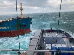 En début d'après-midi, l'hélicoptère Caïman de la Marine nationale avait récupéré l'équipe d'intervention et d'évaluation qui était à bord du navire pour sécuriser le remorquage, et l’a déposée à la base navale de Cherbourg, précise la préfecture maritime.