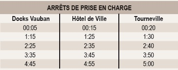 Les services assurés par les taxis partenaires partiront toutes les heures environ des Docks Vauban avec un passage par Hôtel de Ville et Tourneville, puis ils desserviront les communes de destination en fonction de la clientèle présente à bord.