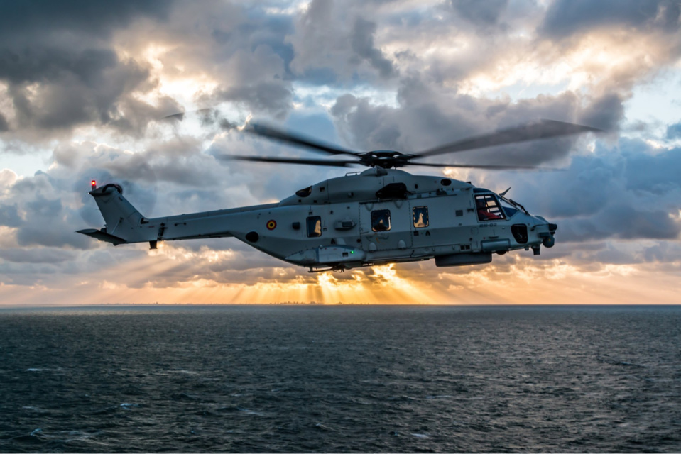 L’hélicoptère Caïman de l’armée de l’air belge a participé aux recherches qui ont été interrompues mardi à 23h20 par la préfecture maritime - Illustration @ Belgian Air Force / Twitter