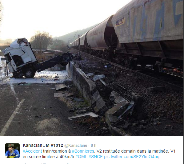 A cet instant, les barrières automatiques du passage à niveau se sont abaissées à l'approche d'un convoi de marchandises. Le train n'a pu s'arrêter à temps et a percuté la remorque à hauteur de la cabine du camion, traînant l'ensemble sur plusieurs dizaines de mètres, selon des témoins. Seul le chauffeur du poids-lourd a été blessé et transporté à l'hôpital.