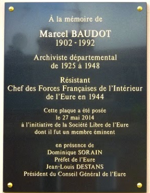 EURE. À l'occasion de la journée nationale de la Résistance, une plaque commémorative à la mémoire de Marcel Baudot, résistant eurois et directeur des Archives départementales, a été dévoilée le 27 mai sur la façade du bâtiment des Archives départementales.