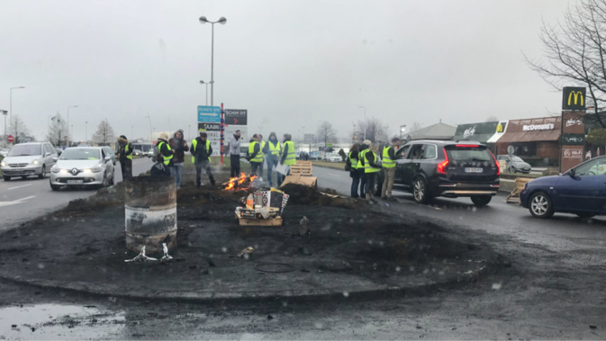 Les Gilets jaunes sont toujours présents à l'entrée du centre commercial de Tourville-la-Rivière - Photo © infonormandie