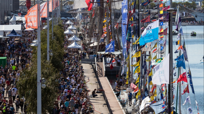 De 8h à 10h15 : Passage commenté des voiliers (Port Center entre le Quai de Southampton et le Quai des Abeilles)