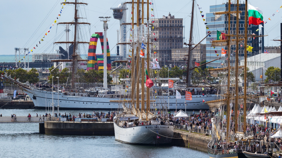 De 8h15 à 11h30 : Parade des grands voiliers devant la plage du Havre (depuis la digue Nord jusqu’au Cap de la Hève puis retour des voiliers devant la plage)