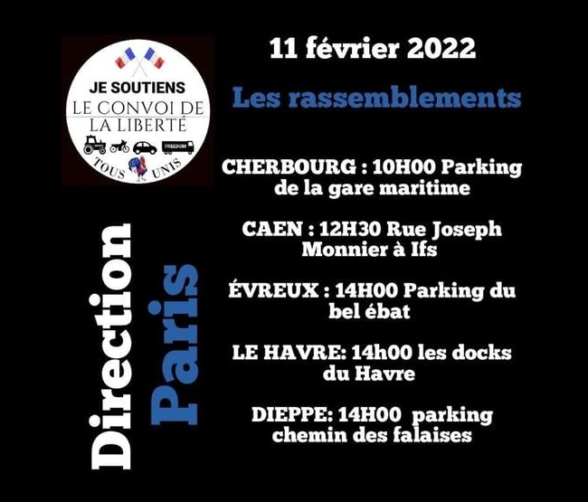 Dans le cadre du mouvement des « Convois de la liberté » des rassemblements routiers sont en cours dans plusieurs agglomérations du département, notamment à Évreux (Pré du Bel-Ebat). D'où des difficultés importantes à prévoir sur les routes du réseau secondaire (départementales et nationales).