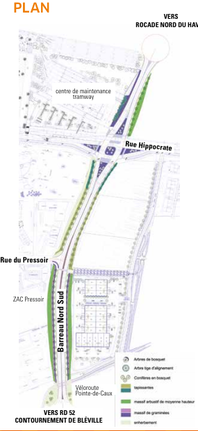 Le projet de barreau nord-sud reliant la rue Hippocrate au contournement de Bléville constitue un axe important pour l’agglomération havraise et structure l’entrée nord de la ville du Havre vers le Mont-Gaillard.