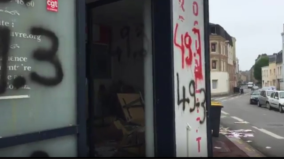Sur réseaux sociaux les dégâts occasionnés par les manifestants (ville du Havre ou permanence PS) C'est inacceptable pic.twitter.com/ziGWi2S3oE