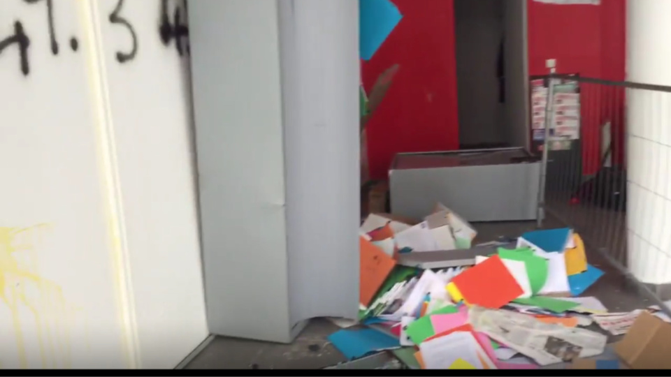 La permanence du Parti socialiste, dans le quartier du rond-point, a été logée à la même enseigne. Une porte d'entrée a été arrachée et l'intérieur des locaux saccagé. Les dossiers ont été sortis des tiroirs et éparpillés à même le sol. Des inscriptions ont été peintes à la peinture sur les murs ainsi que sur la façade extérieure. Les dégâts sont importants.