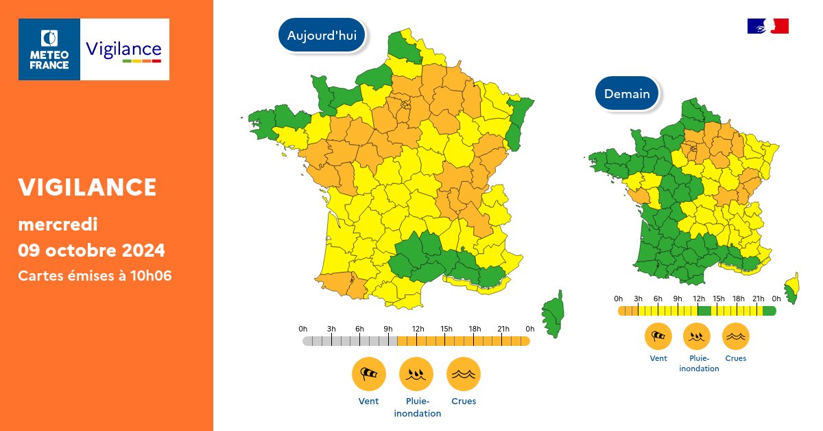 Ces zones pourraient subir des précipitations abondantes susceptibles de provoquer des inondations, notamment sur des bassins versants déjà saturés par les pluies des dernières 24 heures. Il est également possible que les départements limitrophes en vigilance jaune atteignent des niveaux préoccupants.