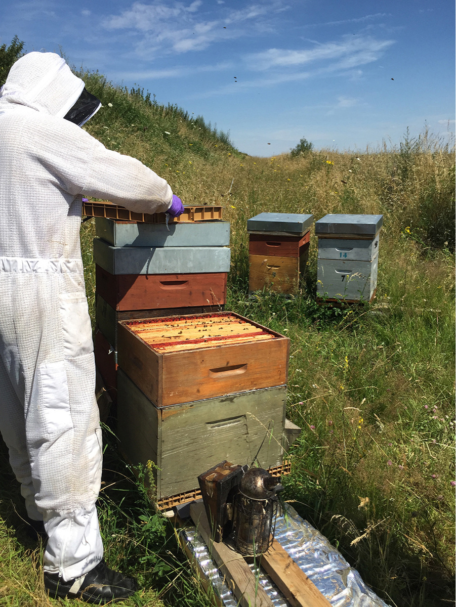 Dans le cadre du plan départemental de sauvegarde des messicoles et des pollinisateurs, des ruches ont été installées en 2018 au domaine d'Harcourt et sur le site archéologique de Gisacum - Photo © Département 27