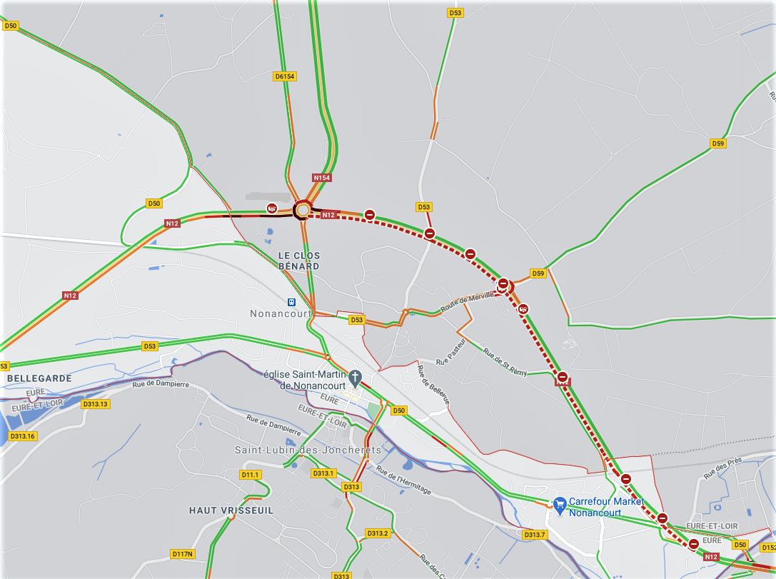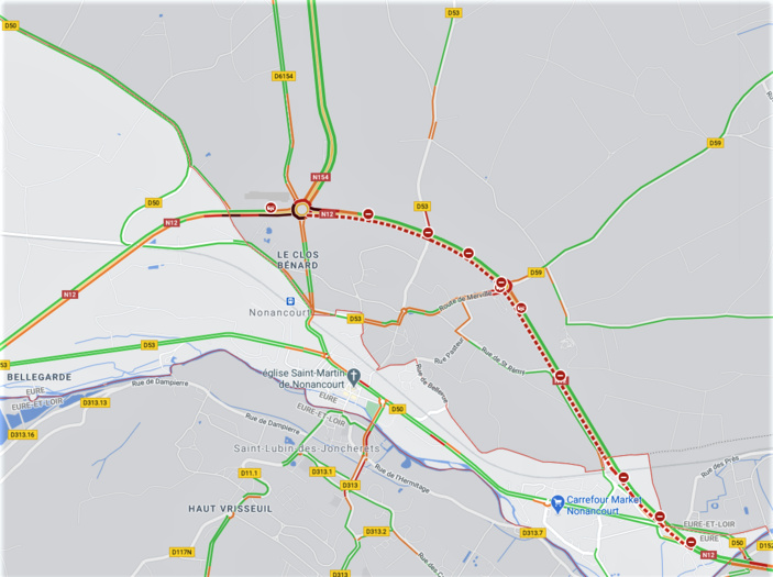 La circulation sur l'axe Verneuil-sur-Avre et Dreux devrait être perturbée une bonne partie de la journée, selon les informations de la Direction interdépartementale des routes (Dirno).