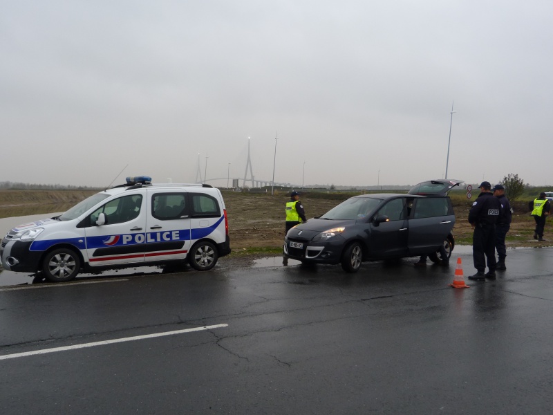 Sur le pont, dans tous les sens du terme : 194 policiers, 152 gendarmes, ainsi qu'une quarantaine de policiers municipaux de 18 communes de Seine-Maritime. Près de 400 hommes et femmes donc pour tenir 125 points de contrôles, avec pour cibles les grands axes routiers et autoroutiers desservant la région parisienne, la Haute et la Basse-Normandie.