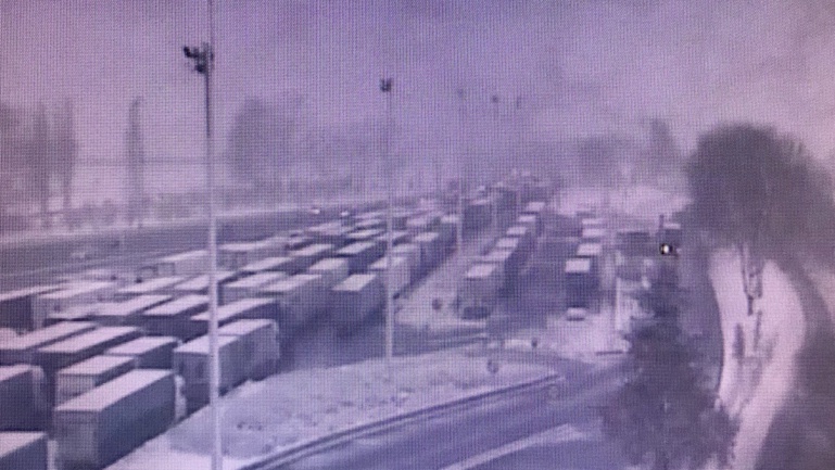 Plusieurs zones de stockage pour poids lourds ont été mises en place pour la nuit sur les autoroutes d'Île-de-France (Document © Sanef/Twitter)