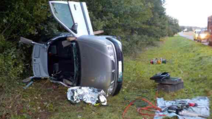 L'accident s'est produit jeudi 14 septembre vers 7 heures du matin, sur la route départementale 3 entre Heudicourt et Étrépagny (Eure). Le véhicule roulait en direction d'Étrépagny lorsque, pour une cause ignorée, la conductrice, âgée de 32 ans, en a perdu le contrôle. L'automobiliste a eu le réflexe de freiner mais la voiture a glissé sur la chaussée humide, a traversé la route et s'est immobilisée sur le flanc sur le bas-côté herbeux.