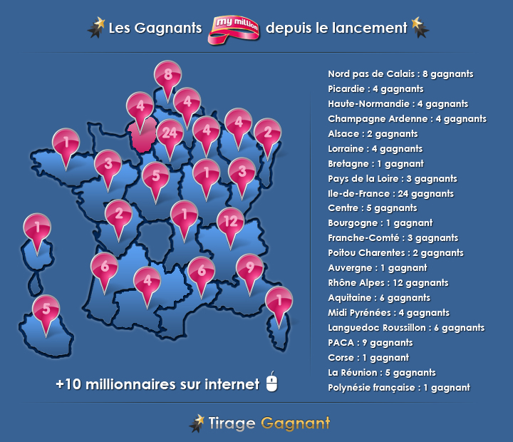 Pour cette semaine des millionnaires, l’équipe du site Tirage-Gagnant.com vous propose une infographie des 120 gagnants avec un zoom sur les 4 gagnants Haut-Normands. Afin d’étayer votre propos, voici une liste des informations importantes à retenir de cet événement.
