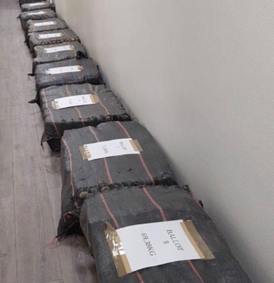 15 ballots de toile de jute renfermant la drogue avaient été introduits clandestinement selon la technique du « rip-off » - Photo @ Douane française