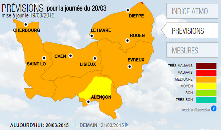 L’épisode de pollution constaté mardi et mercredi a connu une légère mélioration aujourd’hui jeudi 19 mars et va se poursuivre ce vendredi, en Seine-Maritime et dans l'Eure selon les prévisions de l'association Air Normand.