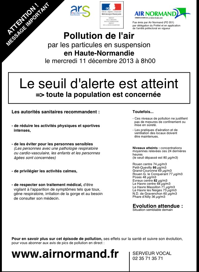 En conséquence, Pierre-Henry Maccioni, préfet de la région Haute-Normandie, préfet de la Seine-Maritime, recommande la mise en œuvre des mesures suivantes :