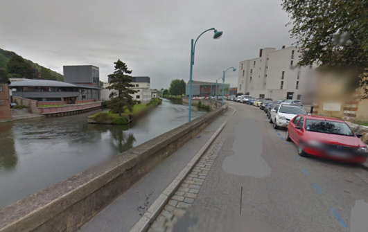 C'est dans près du bras de la Risle, à proximité de la salle des Carmes, quai de la Tour Grise, que le cadavre a été découvert (Illustration@Google Maps)