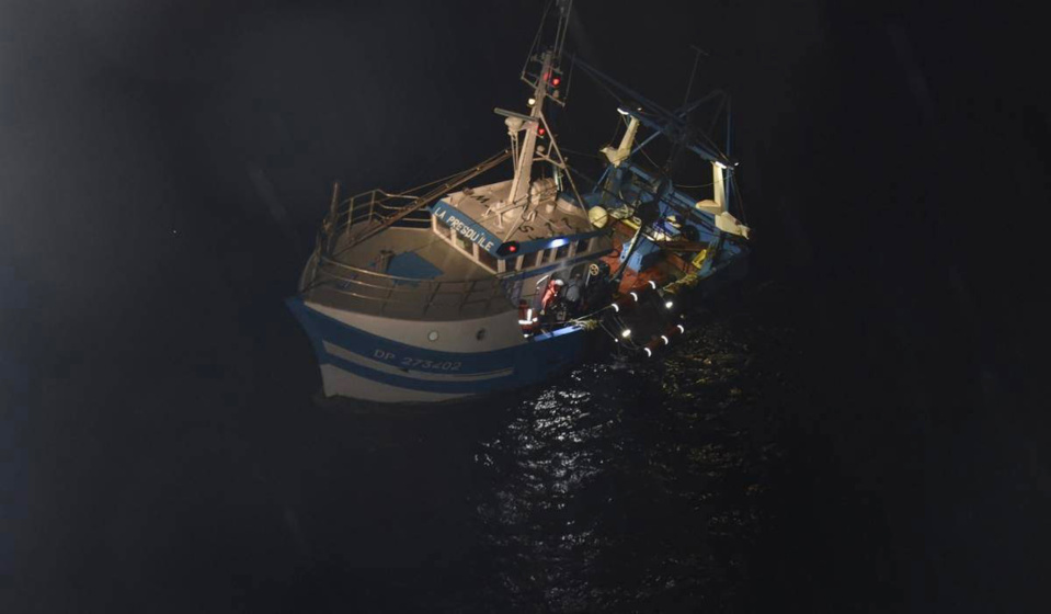 Il a alors été décidé d’évacuer, via l’hélicoptère de la Marine, les quatre marins pêcheurs vers le sémaphore de Fécamp où ils ont été pris en charge, non blessés, par les sapeurs-pompiers.