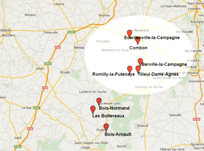 A Tilleul-Dame-Agnès, cette nuit là, deux portes de la mairie ont été forcées mais rien n'a été volé. Plus loin à Combon, onze ordinateurs portables ont disparu ainsi que quelques centaines d'euros en espèce. C'était l'argent de la coopérative scolaire et la collecte du Bleuet de France. A Romilly-la-Putenaie, les cambrioleurs sont repartis avec 20€ : la recette de la collecte du Bleuet de France du 11 novembre. A Ecardenville-la-Campagne, ce sont 30€ et, enfin, à Berville-la-Campagne, la mairie a été délestée d'un écran plat d'ordinateur et de 20€.