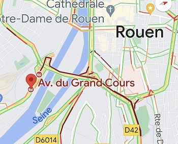 Les secours (9 sapeurs-pompiers et 3 engins) sont sur place et conseillent à la population d’éviter le secteur du pont Mathilde où la circulation est fortement perturbée entre la rive droite et la rive gauche.