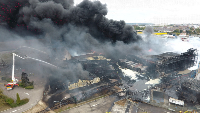 Le feu serait parti de l'extérieur du site, selon la direction de l'usine Lubrizol qui a déposé plainte contre X - Photo © Sdis76